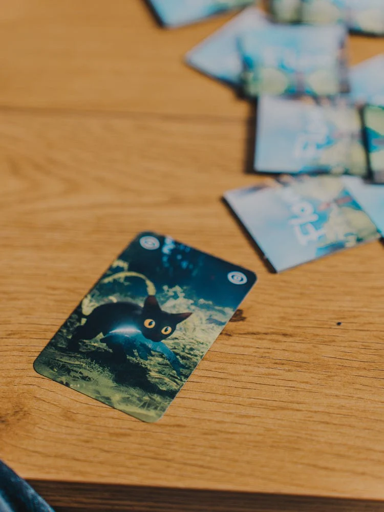 SU OBJETIVO: Ayudar al gato y a sus compañeros a unirse al bote antes de quedarse sin azulejos. El viaje no es fácil, pero, las tarjetas especiales proporcionan capacidades adicionales para ayudar a los animales en todo el camino. Para ayudar a los animales a subir al barco, robar y colocar las fichas caminos o jugar cartas de acción. Cada minuto, un jugador lanza los dos dados que les indican dónde golpea la ola gigante y lleva las fichas ya colocadas.