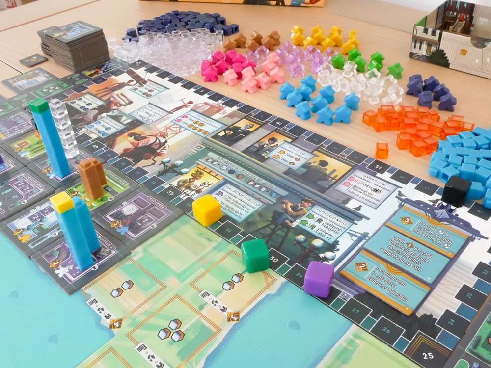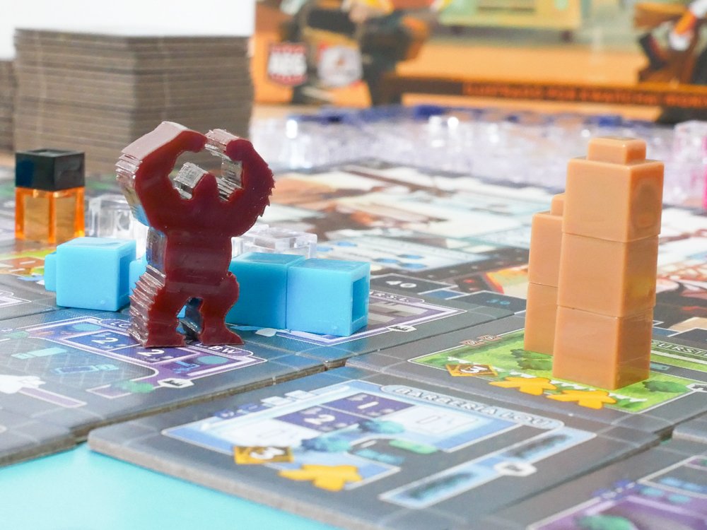 En Rolling Heights, harás «rodar» a los trabajadores que representan tu mano de obra. Aquellos que aterricen de pie te otorgan acciones especiales y materiales de construcción, mientras que los que queden tumbados no te otorgan nada. Siempre podrás tentar a la suerte y lanzar de nuevo, pero podrás perder valiosos materiales que son necesarios para construir nuevos edificios. Completar edificios te otorga prestigio, así como nuevos trabajadores que te ayudarán a construir edificios aún más altos, como los rascacielos.